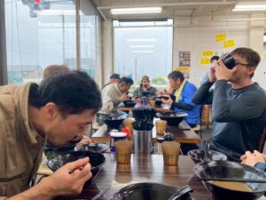 珍しく職人全員が同じ現場に揃ったのでみんなで昼食にラーメンを食べん行きました。